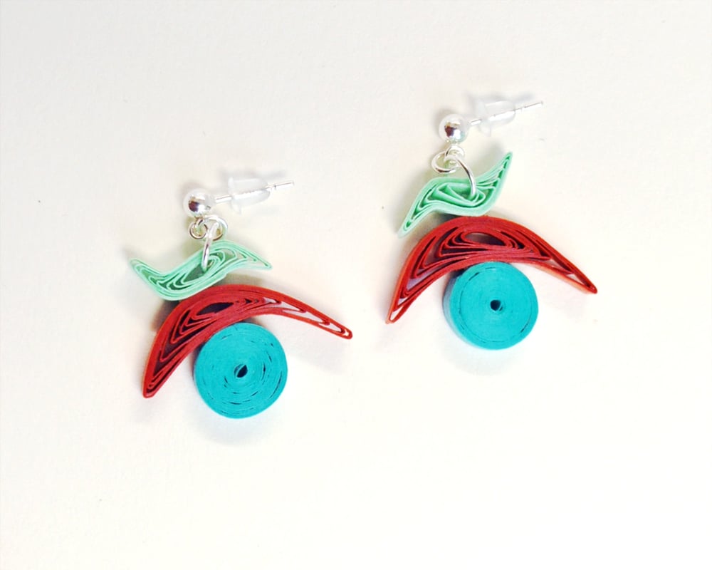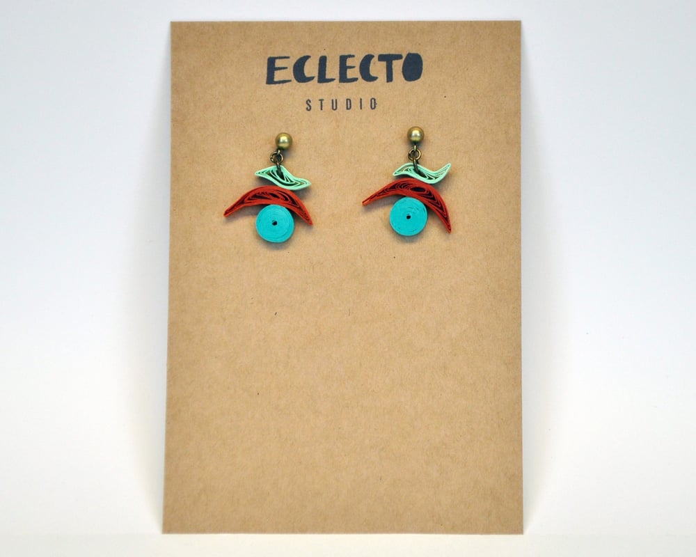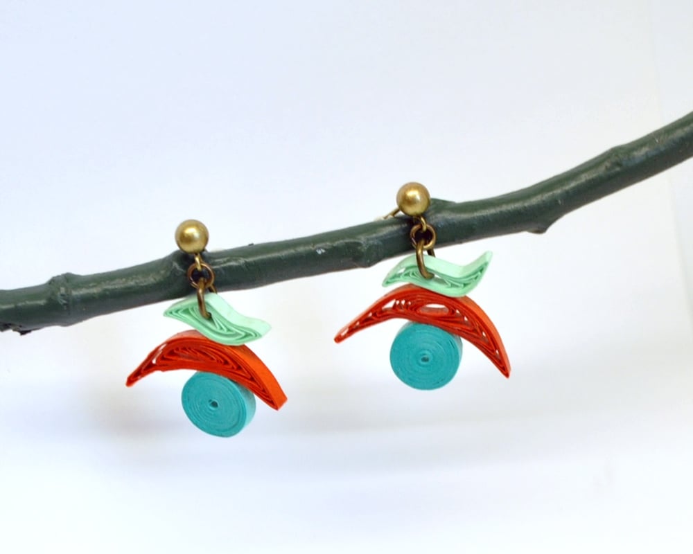Hand crafted with quilled paper elements. Complemented by metal accents available in a warm toned brass or sterling silver.