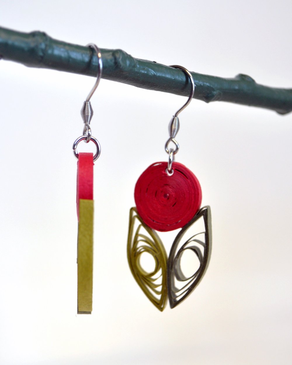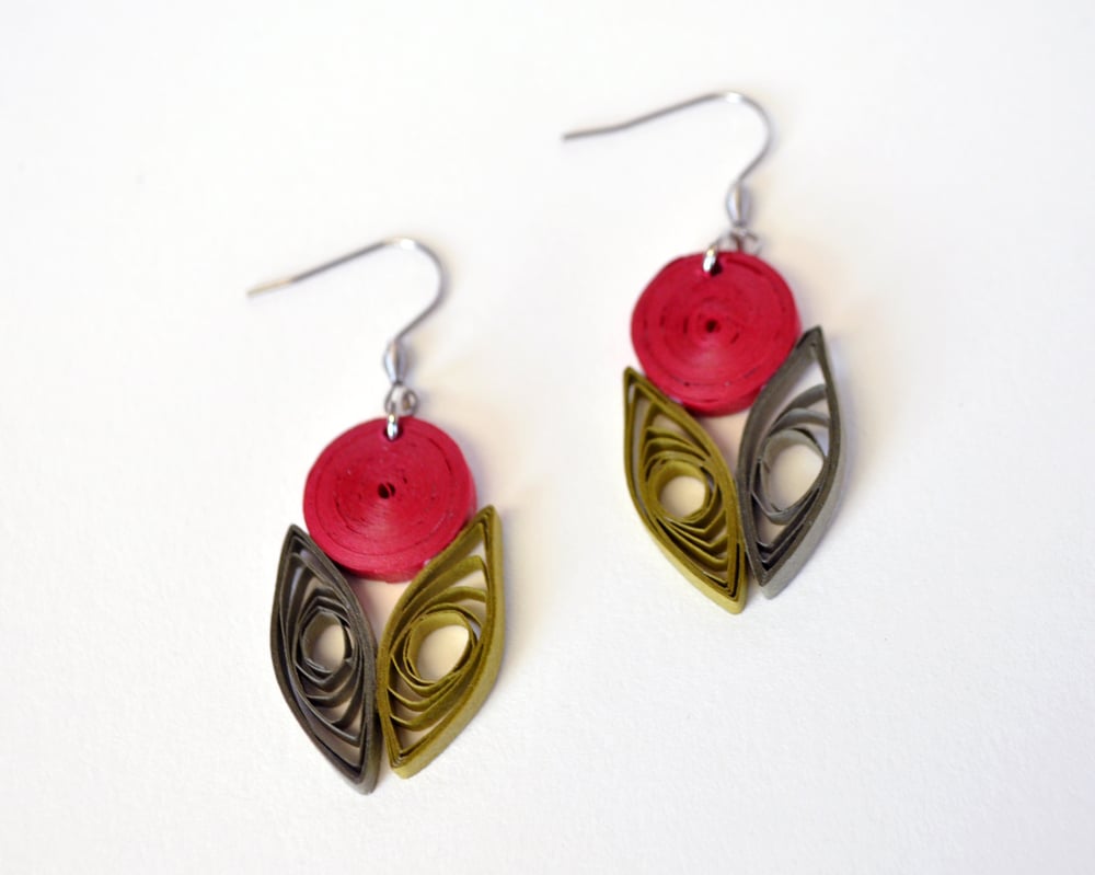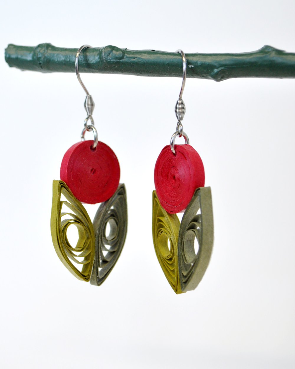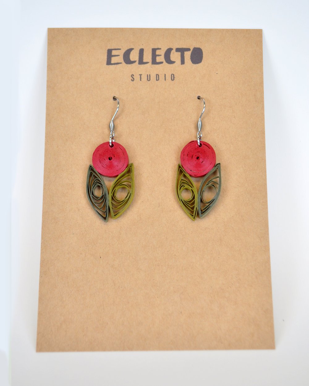 A modern take on the timeless red rose. These sweet dangles feature woody green and moss tones with a red bud. A classic combo to suit any occasion or any festive color pop!