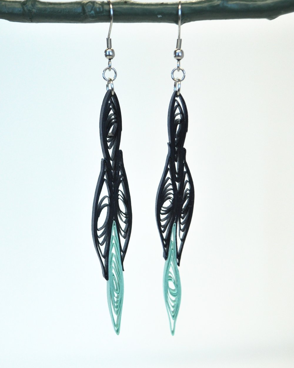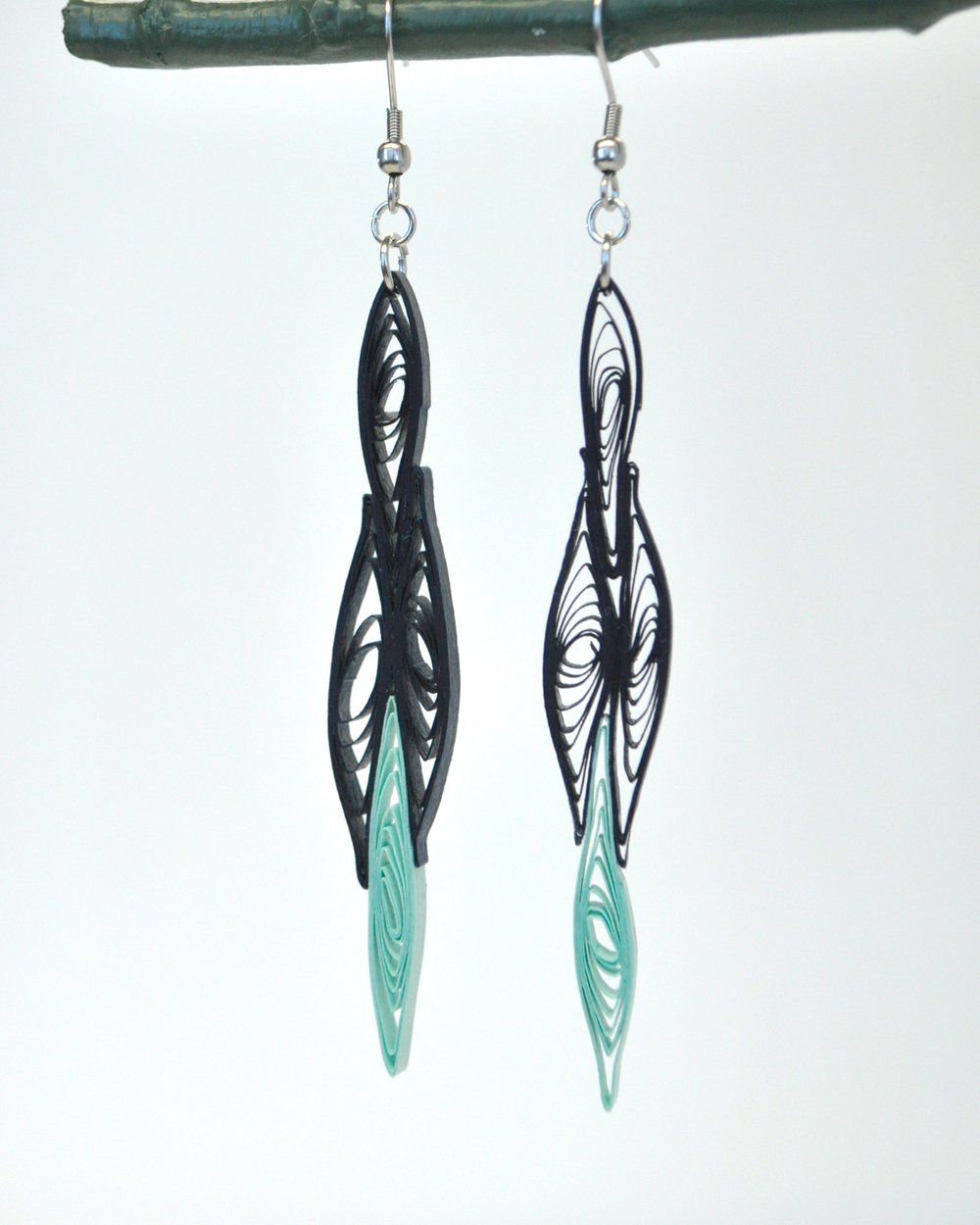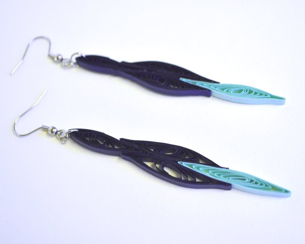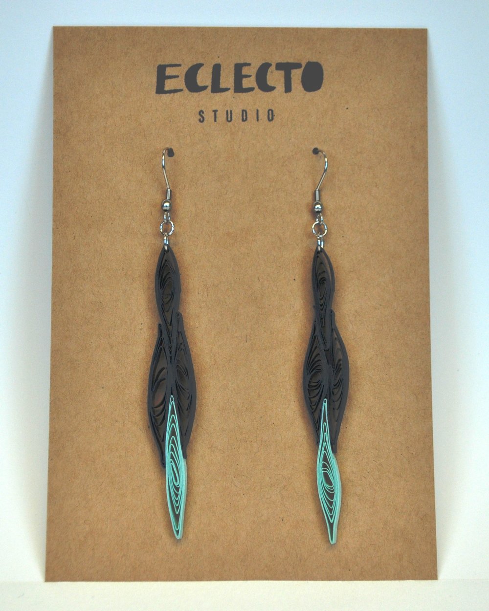 Hand crafted with quilled paper elements. Complemented by stainless steel accents that won't tarnish and suitable for sensitive ears.